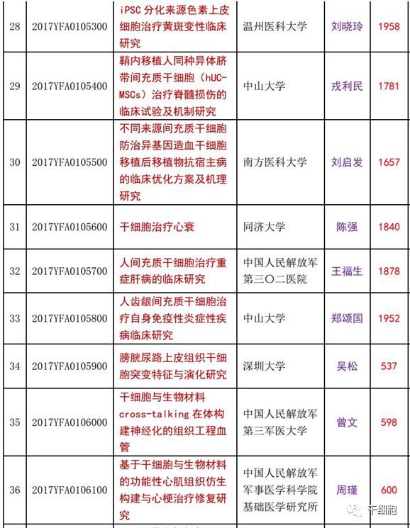 官宣!2021 年干细胞研 究和器官修复项目共三 十个,国家拨款 5 亿